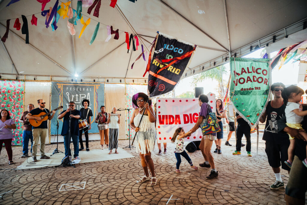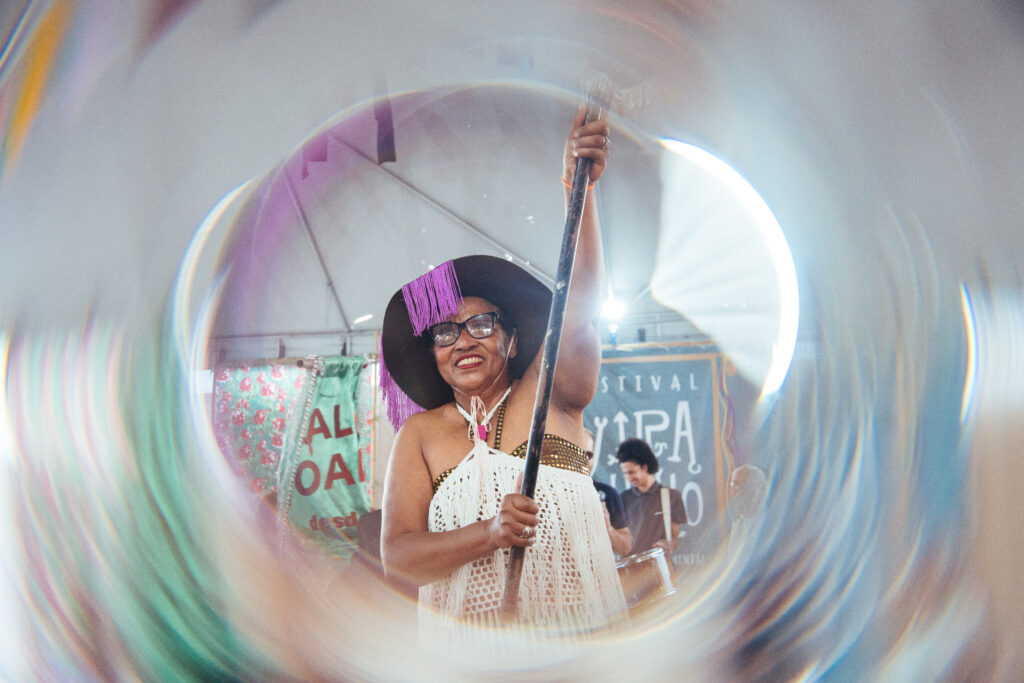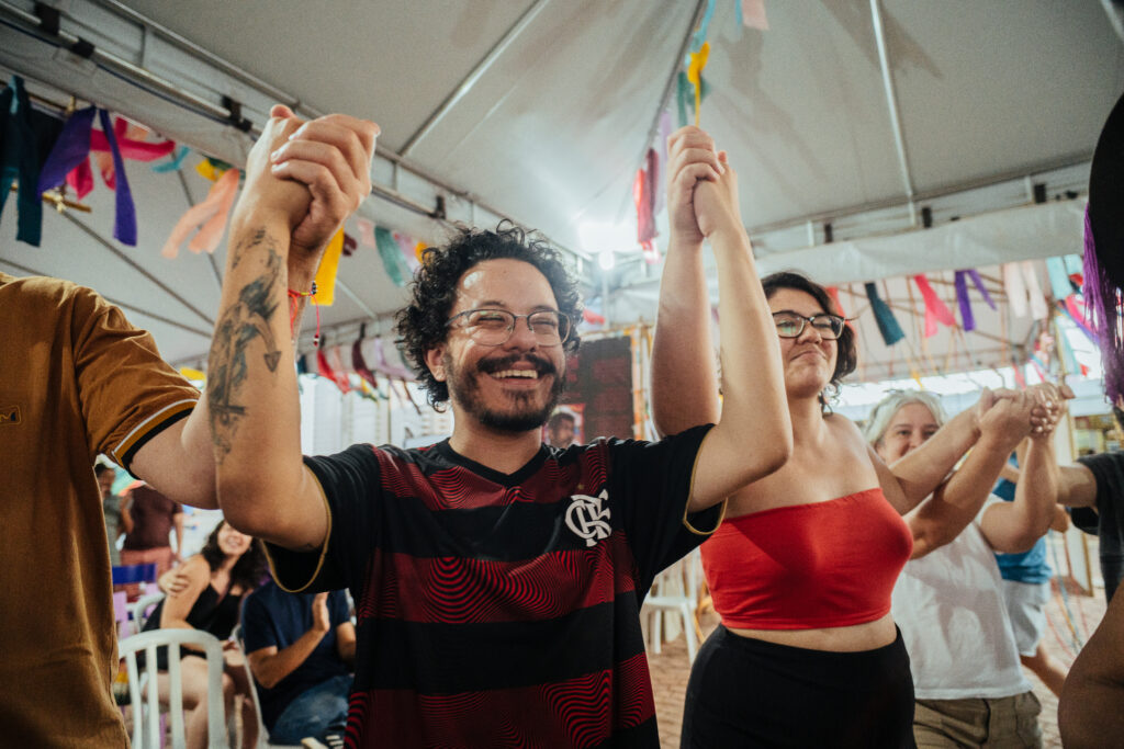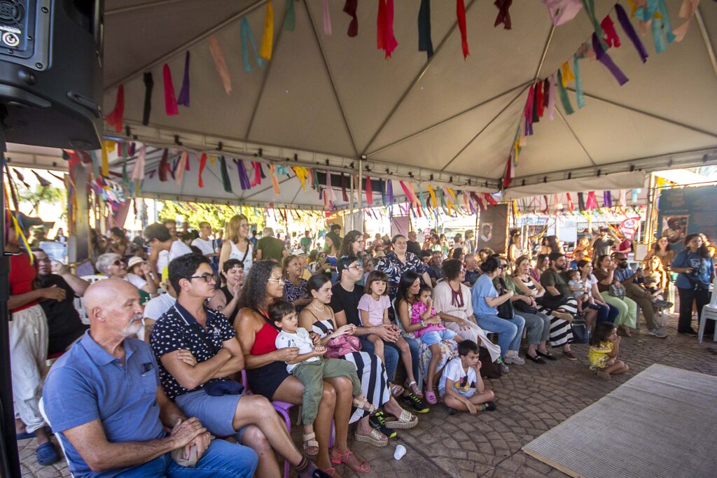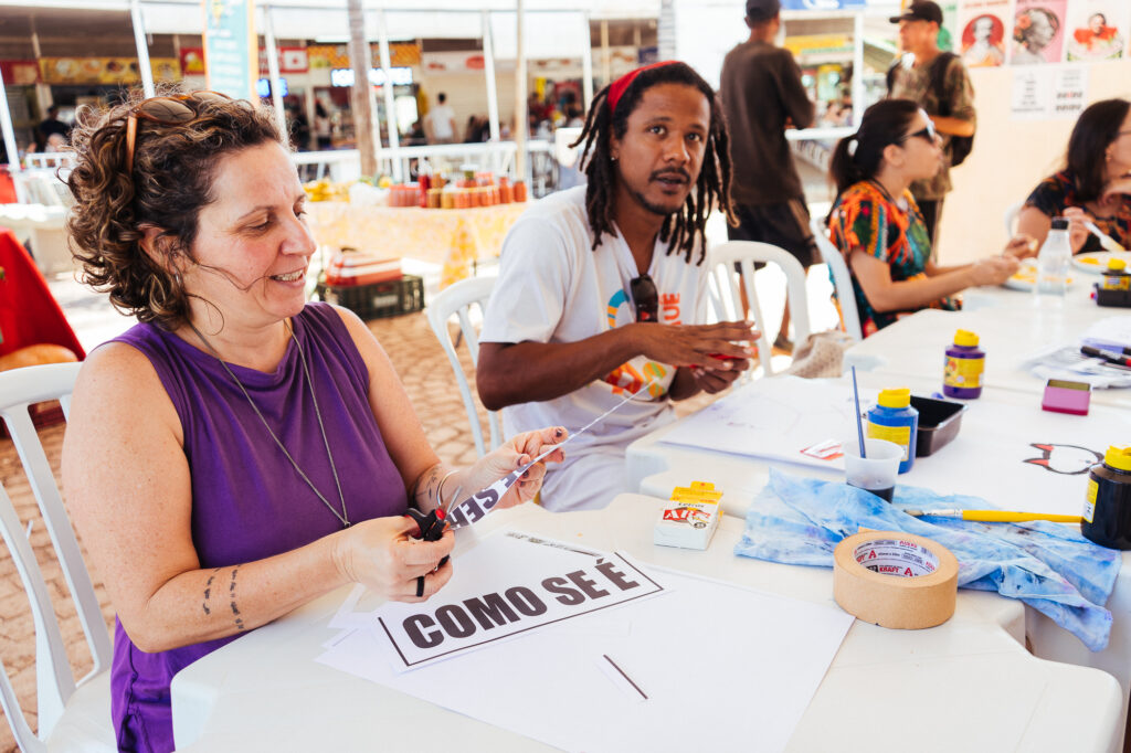 Uma coisa me chamou a atenção. Mesmo quando a gente não estava com atividades, muitas pessoas iam lá ou pra ficar no ambiente, ou pra olhar a exposição dos estandartes. Então, essa era a ideia, de ser um espaço de convivência. Assim, o festival foi muito bem-sucedido em todas as camadas.
