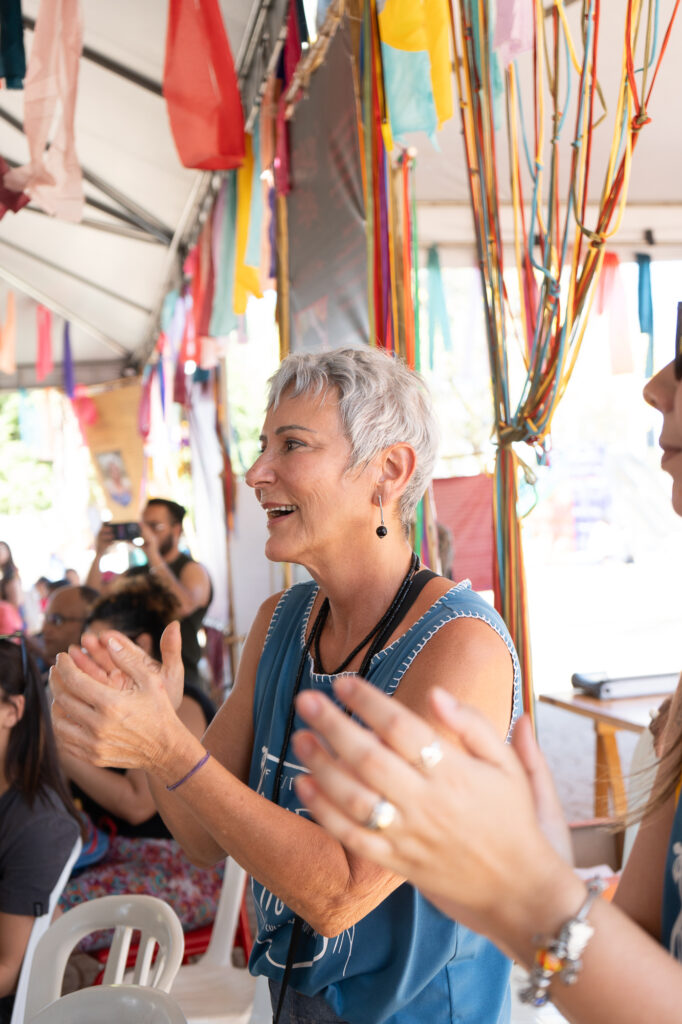 Foi um evento que aconteceu de uma maneira muito tranquila, muito harmoniosa. Todos os participantes e o público interagindo muito, se interessando muito, apoiando. Em diversos momentos, tivemos que mudar a dinâmica dos espaços. No final do dia, na hora de fechar, a gente convidava o público para ajudar, todo mundo muito disponível, tanto pelo tema, que já é muito sensibilizador, quanto pela beleza, no seu sentido mais profundo que o festival conseguiu propiciar. Então, as pessoas ficavam muito tocadas pelas apresentações, pelos conteúdos, pela própria estética, pela ambientação. Foi criado um ambiente de pertencimento para todo mundo que chegava ali.
